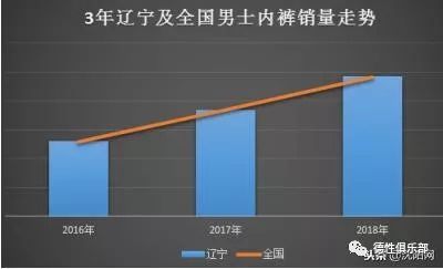 我們首先從圖表一:3年遼寧及全國男士內褲銷量走勢(2016年、2017年、2018年)看出,近三年來,遼寧男性內褲銷售量和全國走勢都是呈上升趨勢。具體來説,2017年,遼寧男士內褲銷量同比增長42%;2018年,遼寧男士內褲銷量同比增長32%。圖表二顯示,2018年遼寧男士內褲銷量同比增長超過全國平均同比速度。
