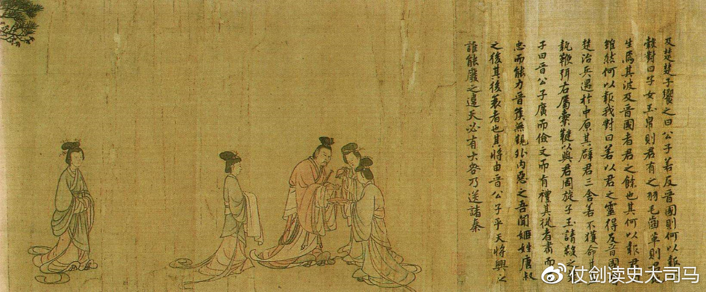李唐名作《晉文公復國圖》-右側《左傳》文字相傳為宋高宗手書