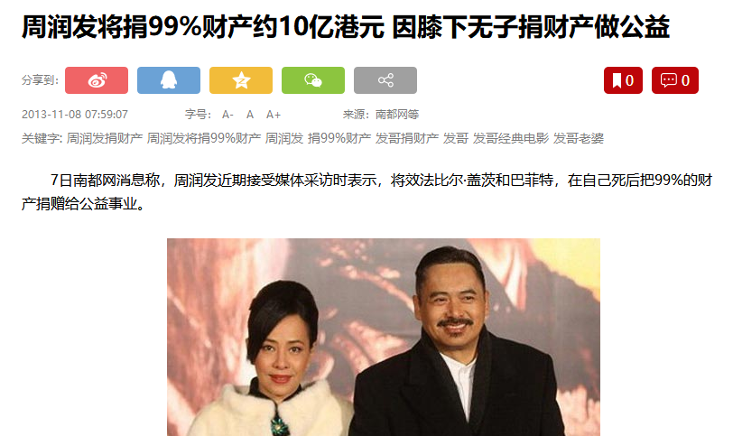 其實周潤發要把所有財產捐出的事情,不是今年才有的消息。網上在之前就有類似報道。