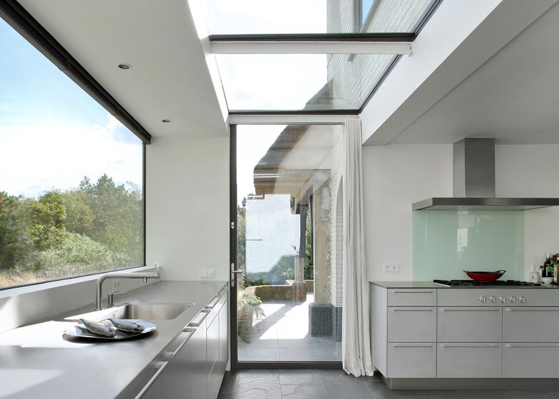 如果屋頂也用玻璃,常常可以獲得更大的空間拓寬感,當然這要看地方和氣候,在炎熱的半沙漠地區這麼幹,那是準備在家裏烤人乾的節奏,經常來一點冰雹的地方也不能這麼幹;但在多陰雨的地方這麼做,就可以大大減少陰雨天的壓抑感
