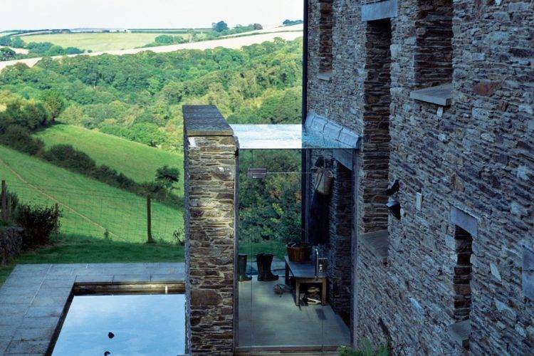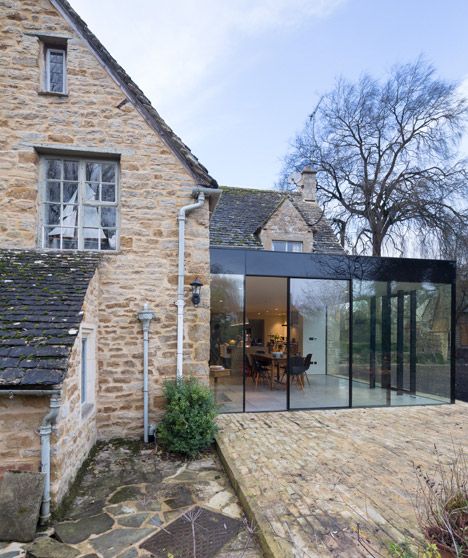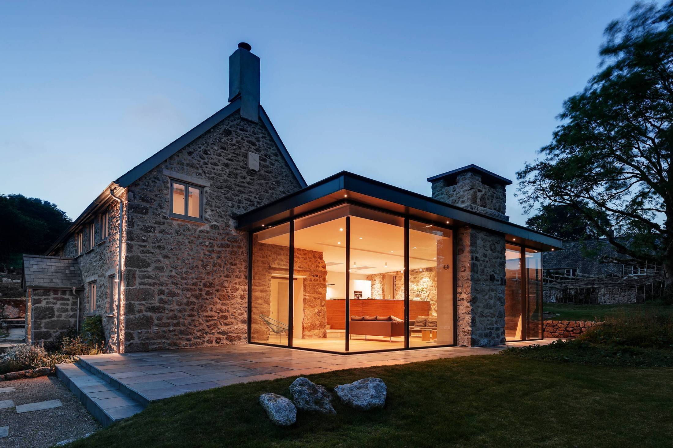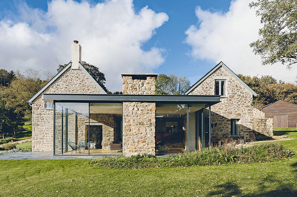 這是一個鄉下石屋,很有老味道,但裏面肯定又小又暗,現代廚衞就不用提了。可這樣加一個玻璃和鋼結構的延伸,配一個原味的壁爐和煙囱作為結構支撐(就不用細鋼架支撐屋頂了),味道和舒適馬上就不一樣了