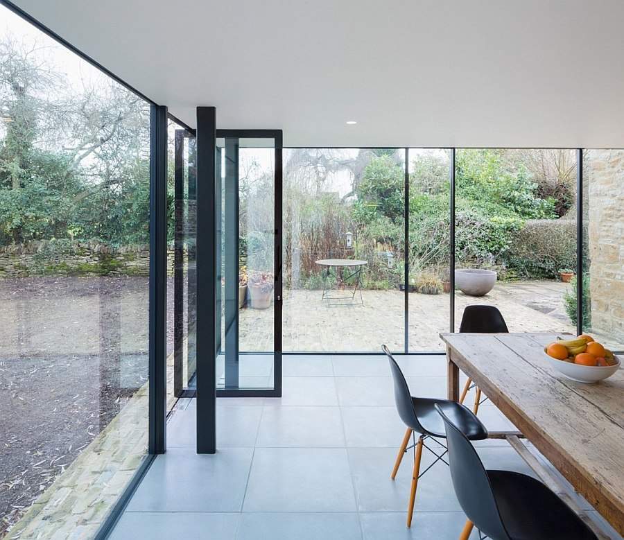 氣候條件容許的地方,這樣用整面可開的玻璃牆還可以極大地增加室內、室外空間的流通感,把原來不大的小院子利用起來