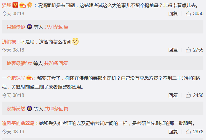 酒店距離考場不過20分鐘路程,可因為滴滴司機爽約,致使她錯過了最後一場考試,一年的努力付諸流水。