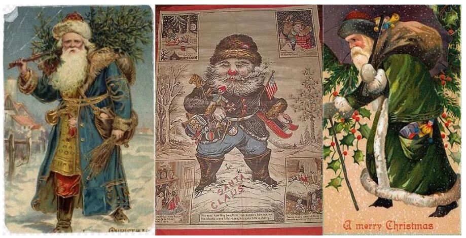 更讓你想不到的是,當1863年《哈伯週刊》第一次刊出聖誕老人形象的時候,他穿了一身星條旗的外套!後來,其他藝術家也紛紛跟上,創作了各種各樣的聖誕老人形象,他們有的穿白的,有的穿綠的。