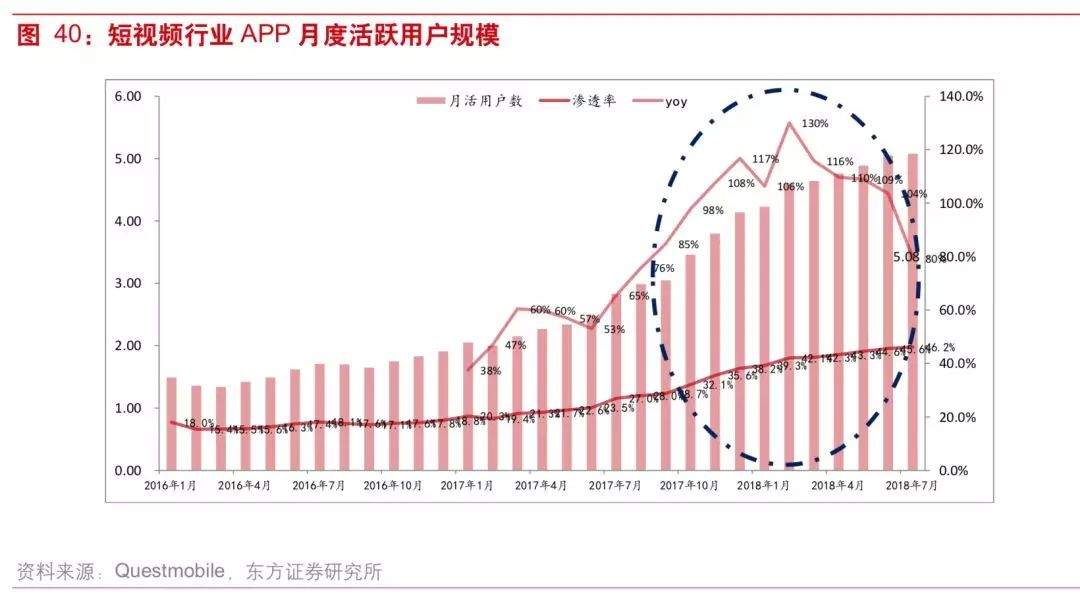 隨之帶來的是,短視頻的天花板已到,東方證券研究所數據顯示,在今年1月之後,短視頻應用的yoy(用户增長率)便直線下滑。