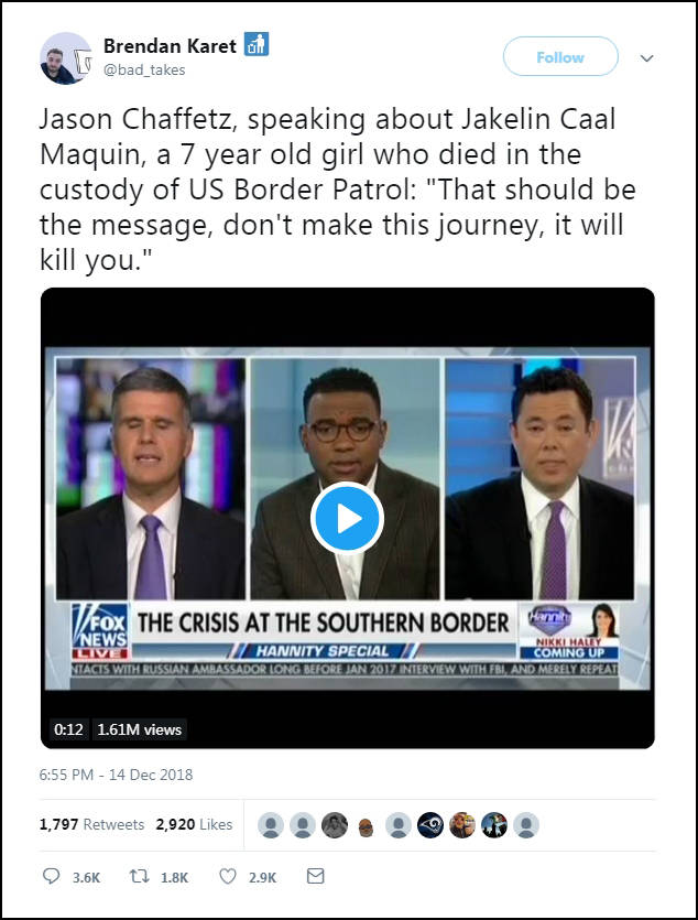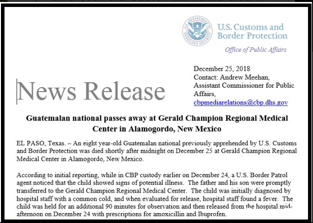 感謝特朗普政府,在聖誕節這天,在全世界的注目下,又一名兒童在美國海關和邊境保護局的看管下死亡。