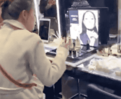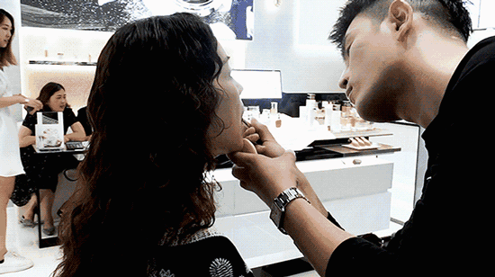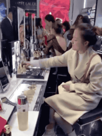 被路人拍到在北京西單化妝品櫃枱試口紅