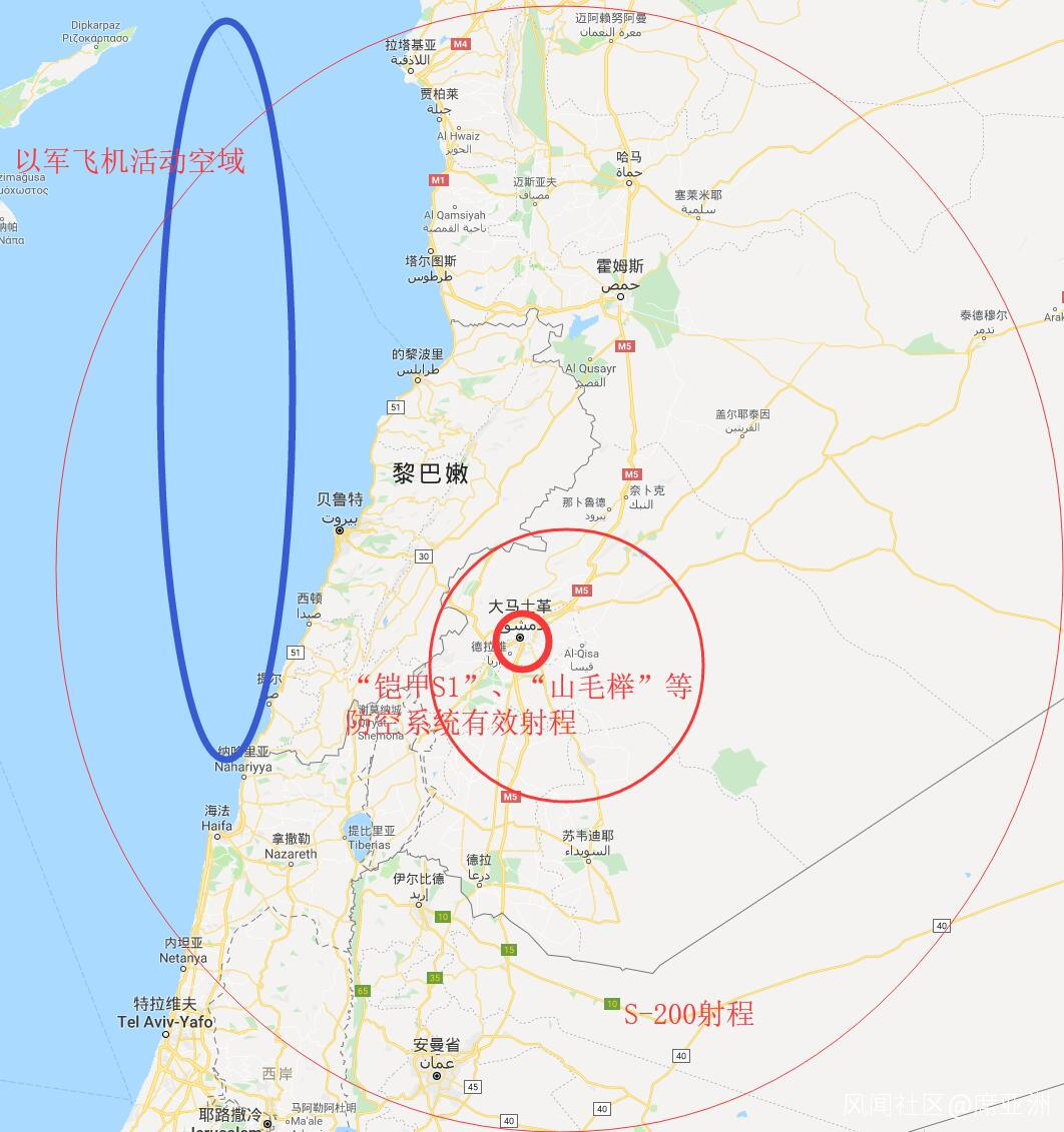 不嚴謹的示意圖……大致上就是説明一下,要想攻擊以軍飛機,目前敍利亞也只能用S-200,只是基本很難奏效……