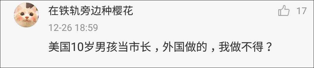 但與此同時,也有網友表示為什麼美國10歲男孩可以當市長,外國做得,我們做不得?