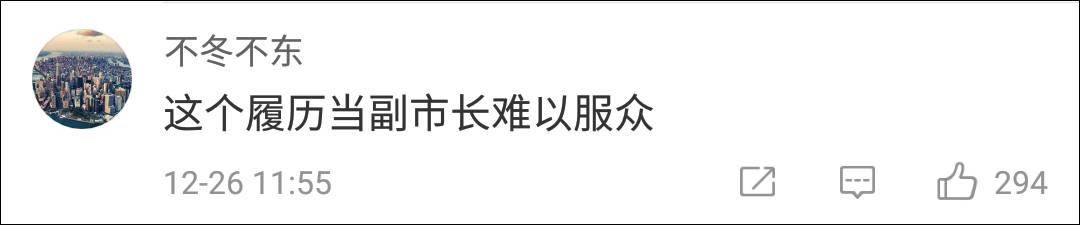 年輕幹部擔任主要領導崗位的新聞早已不再新鮮,這次引起輿論巨大討論的則是她的履歷。不少網友質疑説,像她這樣的沒有基層經驗的可以這樣嗎?還有網友直接表示,她這個履歷當副市長難以服眾。
