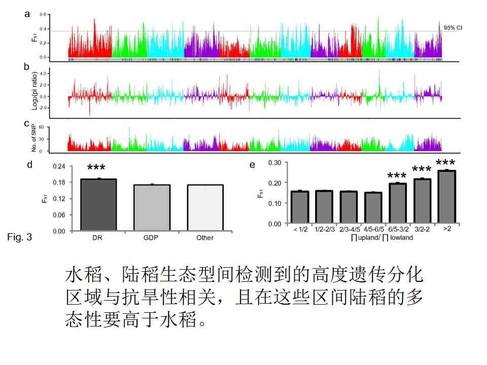 1. 揭示水陸稻存在顯著的遺傳分化,而這種遺傳分化主要是抗旱性的分化。