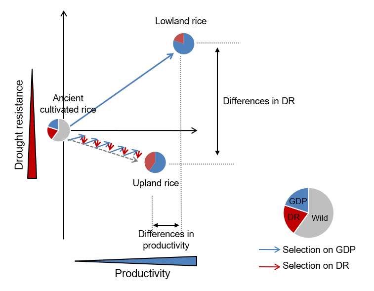 陸稻中的雙向選擇與水稻中的定向選擇導致陸稻和水稻抗旱性與產量的差異