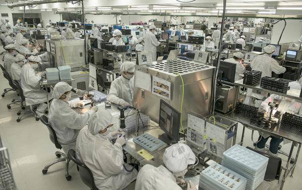 2014年12月05日,廣東省東莞市,無塵潔淨室車間, 工人在工廠生產電腦硬盤。 視覺中國 圖