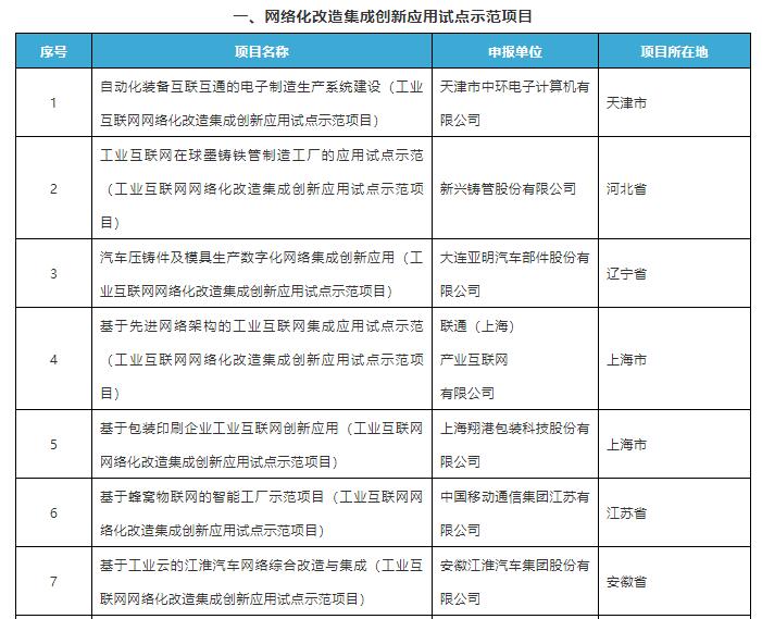 深度解析工信部2018年工業互聯網試點示範項目名單_風聞