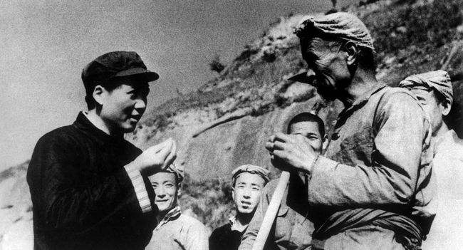 延安時期,毛澤東經常深入田間地頭與農民親切交談