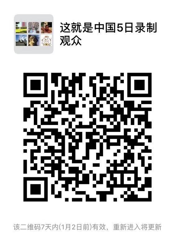 第二、三期節目錄制將於1月5日、6日進行,特招募現場觀眾若干名。每期有200元補貼~