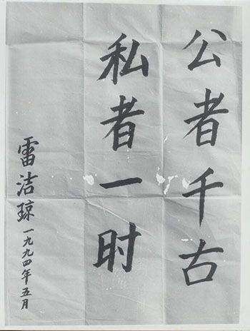 雷潔瓊在1994年參觀韶山時提筆寫下 “公者千古,私者一時”留言,這大概就是從那個戰亂不止的年代走來的人們的感悟和心聲吧,為國者無私利。