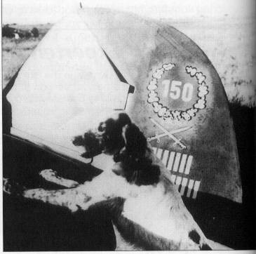 格拉夫的座機的垂尾塗有特別的標誌150架紀錄的花環,下面的標誌表示又擊落的22架敵機
