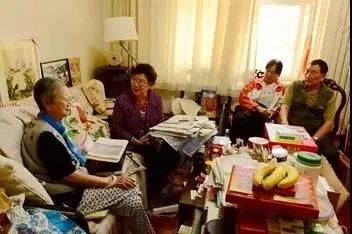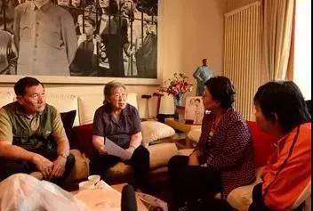 毛主席兒媳劉松林(左一)聽取展覽組曹宏、曹立亞、唐雙和工作彙報。