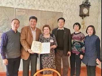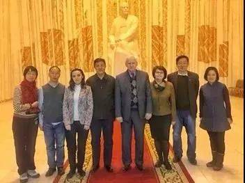 毛主席侄孫曹耘山(右五)、在俄羅斯烏里揚諾夫斯克列寧紀念館館長莉迪亞·拉麗娜(右六)、列寧紀念館原館長瓦列裏(右四)、韶山毛澤東同志紀念館陳列部負責人鄒燕舞(右二)等一行合影。