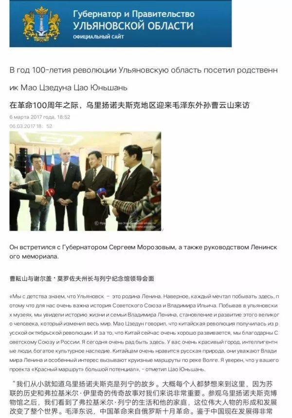 中俄兩國有着悠久的交往歷史,特別是近現代中國革命和建設深受蘇聯的影響,毛澤東等老一輩革命家的成長曆程也與之密切相關。韶山毛澤東同志紀念館是中國和世界唯一一座全面系統地展示毛澤東主席生平業績的紀念館性專題博物館,為加深中俄之間的友誼,讓更多的俄羅斯人更深入地瞭解中國領袖和中國的革命文化,2017年9月,韶山毛澤東同志紀念館隨湖南省韶山管理局同志們一行遠赴俄羅斯,與該國列寧紀念館簽署了為期5年的正式合作協議。中俄雙方的地方合作也由此在烏里揚諾夫斯克州拉開帷幕。