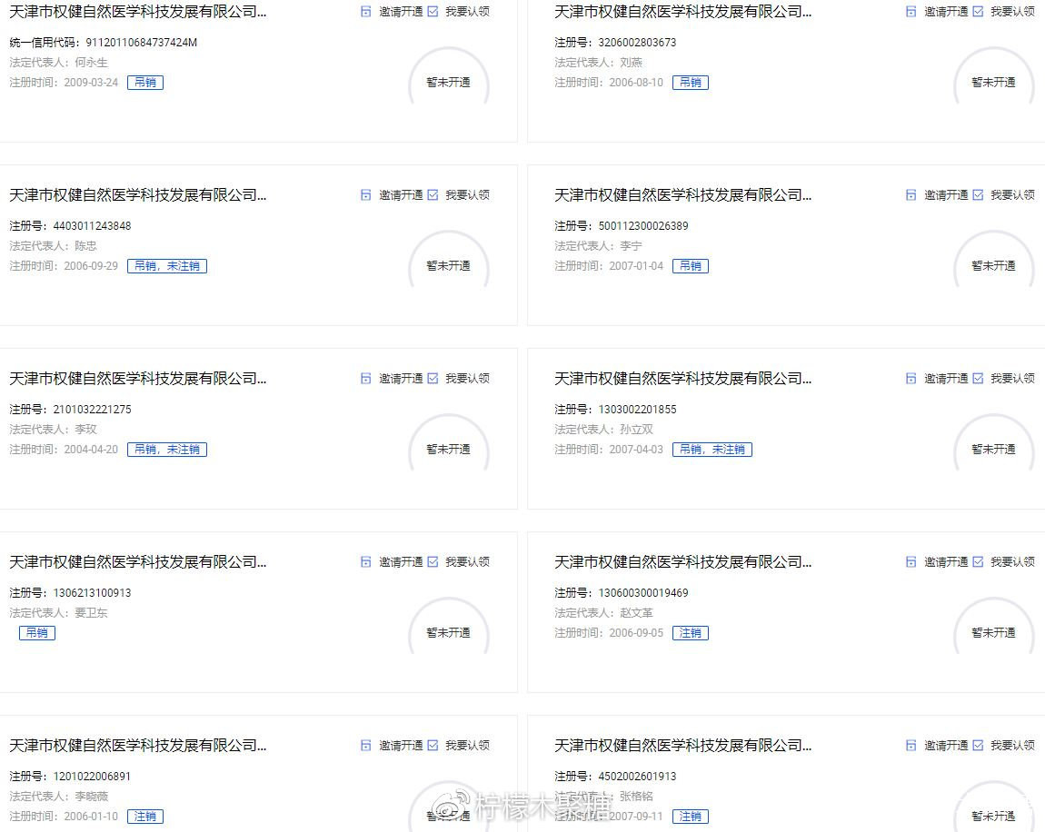 細細查詢之下,我們不難發現,天津市權健自然醫學科技發展有限公司存在大量馬甲被吊銷的問題發生。