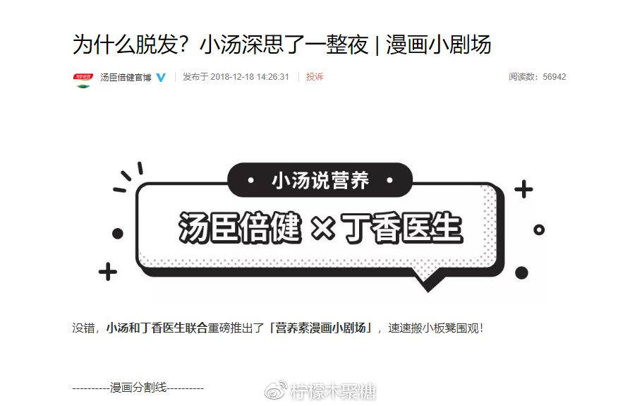 漫畫中把各種身體健康問題,比如脱髮和免疫力差都歸結為蛋白質問題,雖然沒有明確説讓你買湯臣倍健的蛋白粉,但是這種科普本來就是不對的,更不要提湯臣倍健本身就賣這個。