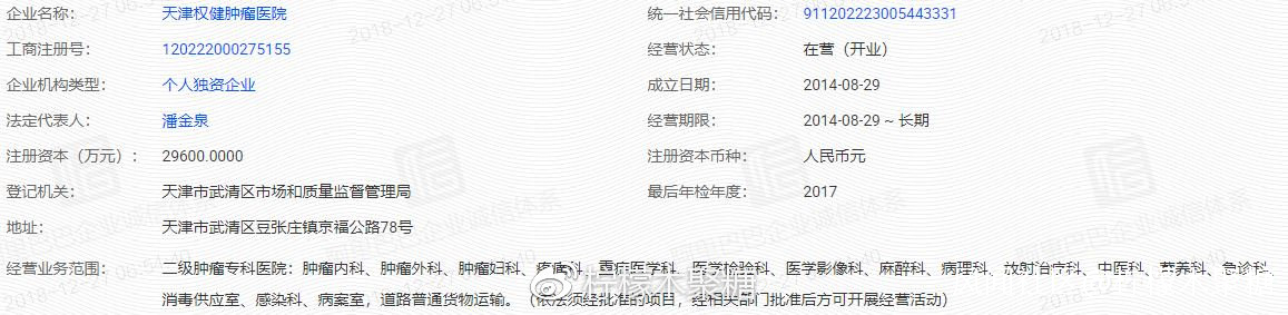 而且,更加糟心的是,權健旗下還有正規的腫瘤醫院,大家都知道癌症這個事情很燒錢的,丁香醫生文章裏報道的那個孩子也是在正規醫院燒了40萬之後才接觸權健的。那麼權健旗下的這家正規醫院,每年又治療了多少患者呢?感到憂慮。