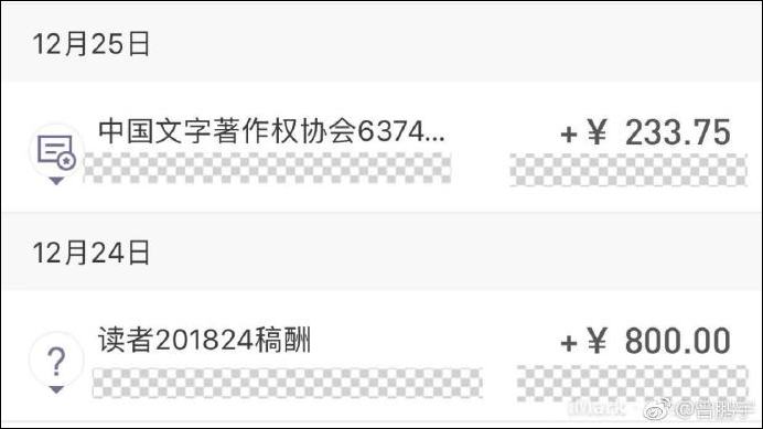 我看了一下,兩筆稿費都到了——大家請忽略金額,因為稿費本來就不多,轉載的標準更低,但這至少是一種尊重。