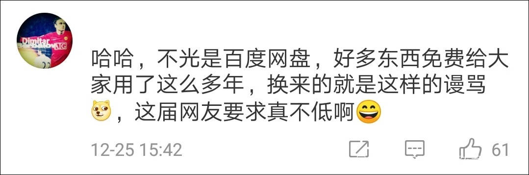 簡單來説就是,百度網盤本身在用户中就沒有什麼好印象,然後現在再做什麼事情都容易被誤讀,即使辦的是好事;而百度網盤在想要調整用户的存儲空間這件事情上,辦得也不是那麼的漂亮,發個通知相當於是讓網友做了一道閲讀理解的題目。