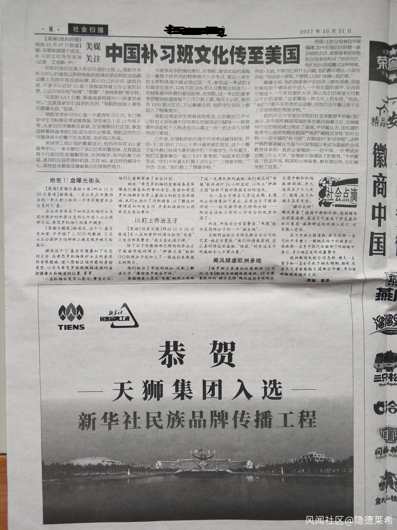 某非常權威的時政類媒體,版面上也有直銷賣保健品的天獅集團的廣告