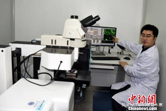 中科院蘇州醫工所科研人員操作研成成功的激光掃描共聚焦顯微鏡。 孫自法 攝