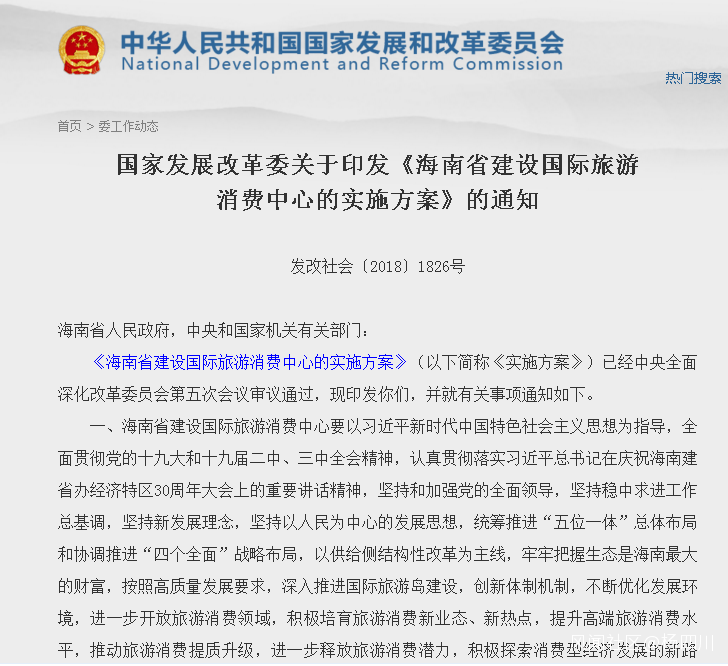《海南省建設國際旅遊消費中心的實施方案》(以下簡稱《實施方案》)已經中央全面深化改革委員會第五次會議審議通過,現印發你們,並就有關事項通知如下。