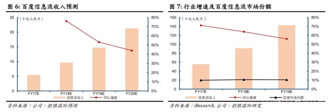 百度向“搜索+信息流”雙引擎轉型,使其網絡營銷收入增速開始回升,使得其2018年Q3仍保持12%的同比增速。