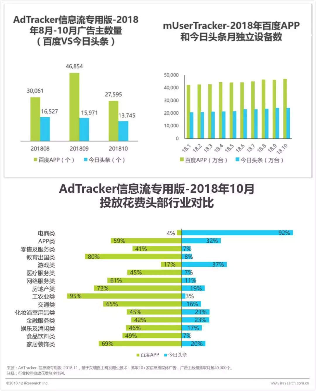 從獨立設備數以及廣告主數量來看,百度在2018年都保持了對今日頭條的優勢。