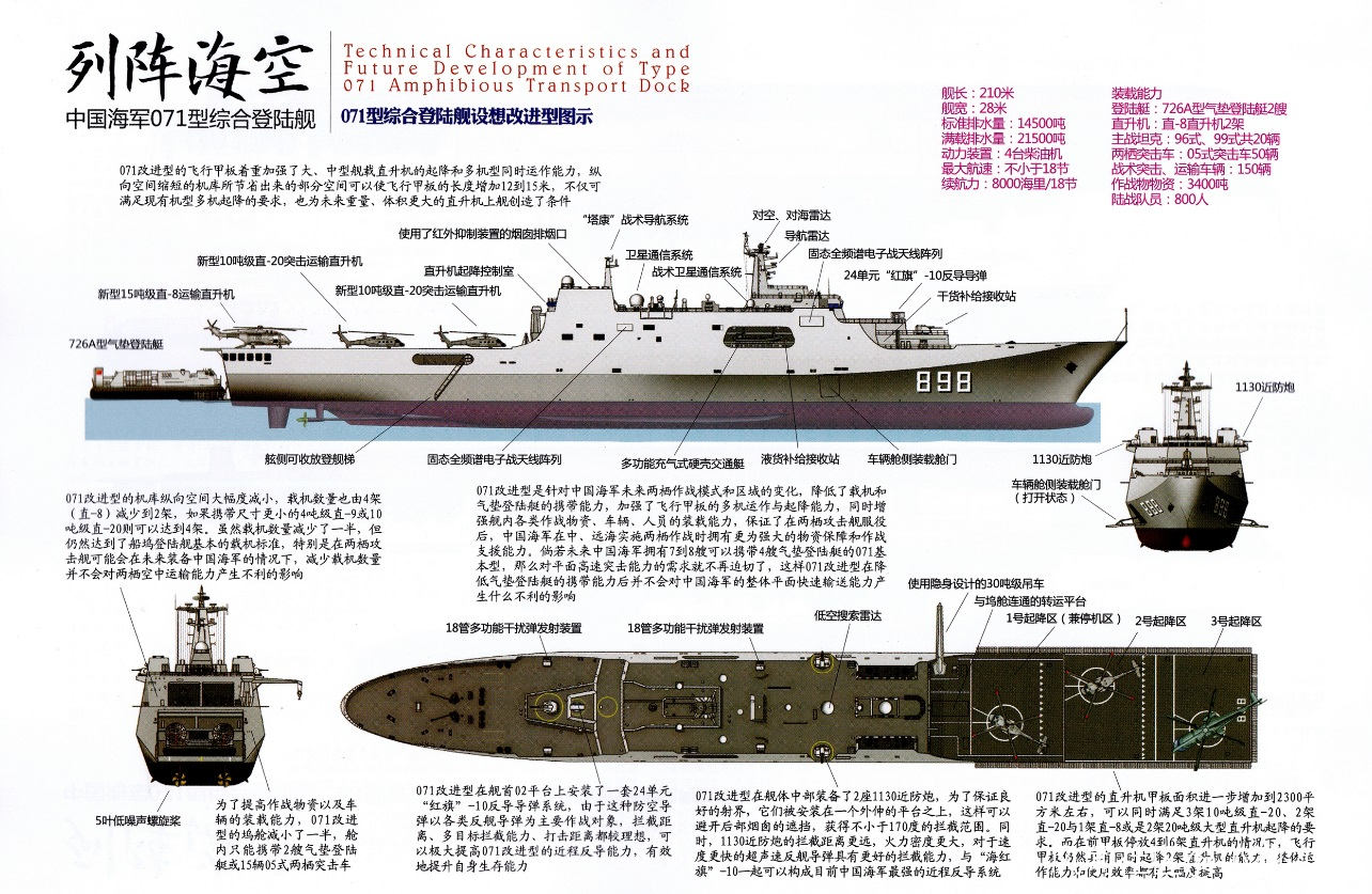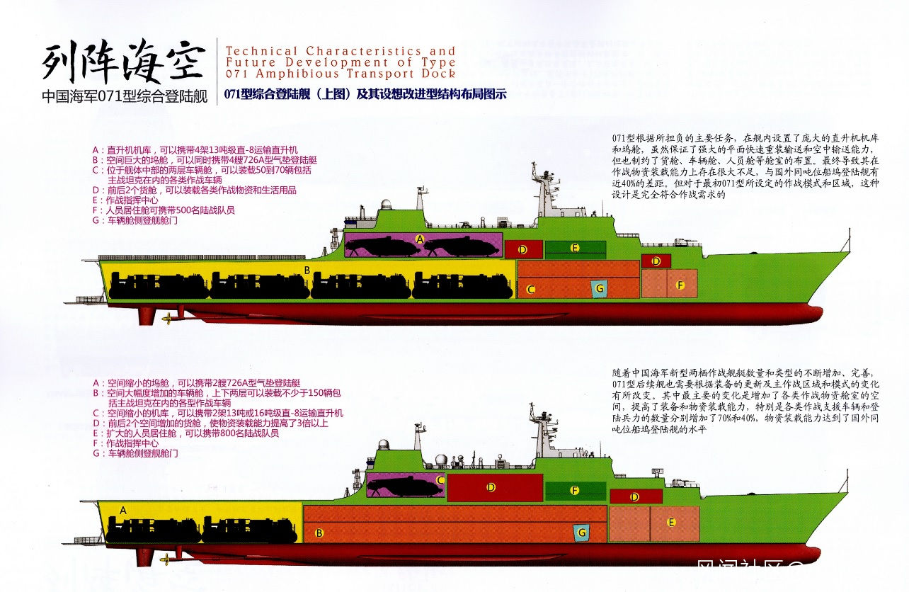 超大軍事論壇網友**“平天”**提出了一個071崑崙山的大運量改型方案,減少搭載的直升機數量、氣墊船數量,增加了人員、車輛、物資裝載量。