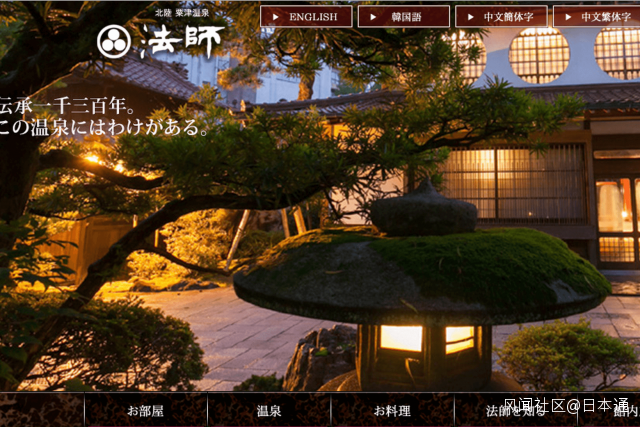 雲”而命名的。公元705年,某家族在河流沿岸發現了湧出的温泉,以此創建了這家旅館,經營到現在已是第52代繼承人。