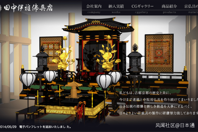 該公司的商品目錄支持3D呈現,帶上3D眼鏡就可虛擬看到立體的佛具圖鑑等。並且公司網站上的“CG畫廊”也有和商品目錄同樣效果的佛具影片。