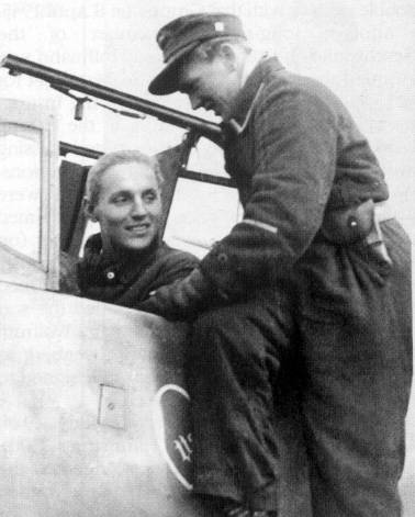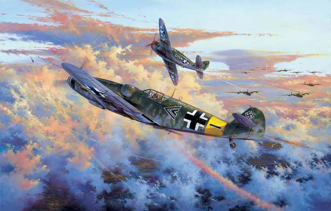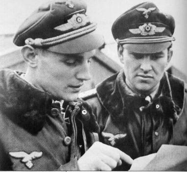沃爾夫隆姆(Walter Wolfrum)和薩克森伯格(Heinz Sachsenberg)是一對難兄難弟,兩人同屬“第二代”,分別在1944年6月1日和8日分別擊落第100架敵機,馬上雙雙負重傷,又都在1945年初重返前線。説來可悲,二戰中“最先進”的Me262噴氣式戰鬥機,低空、低速機動性十分差勁,若是在起飛、着陸過程中遇到盟軍戰鬥機的偷襲,那是“死蟹一隻”,所以還要靠老式的Me109或FW190在機場上空護駕。薩克森伯格攬來的就是這麼一個好差事,升任JG44的Me262的機場警衞中隊長,沃爾夫隆姆則升任JG52的1中隊長。