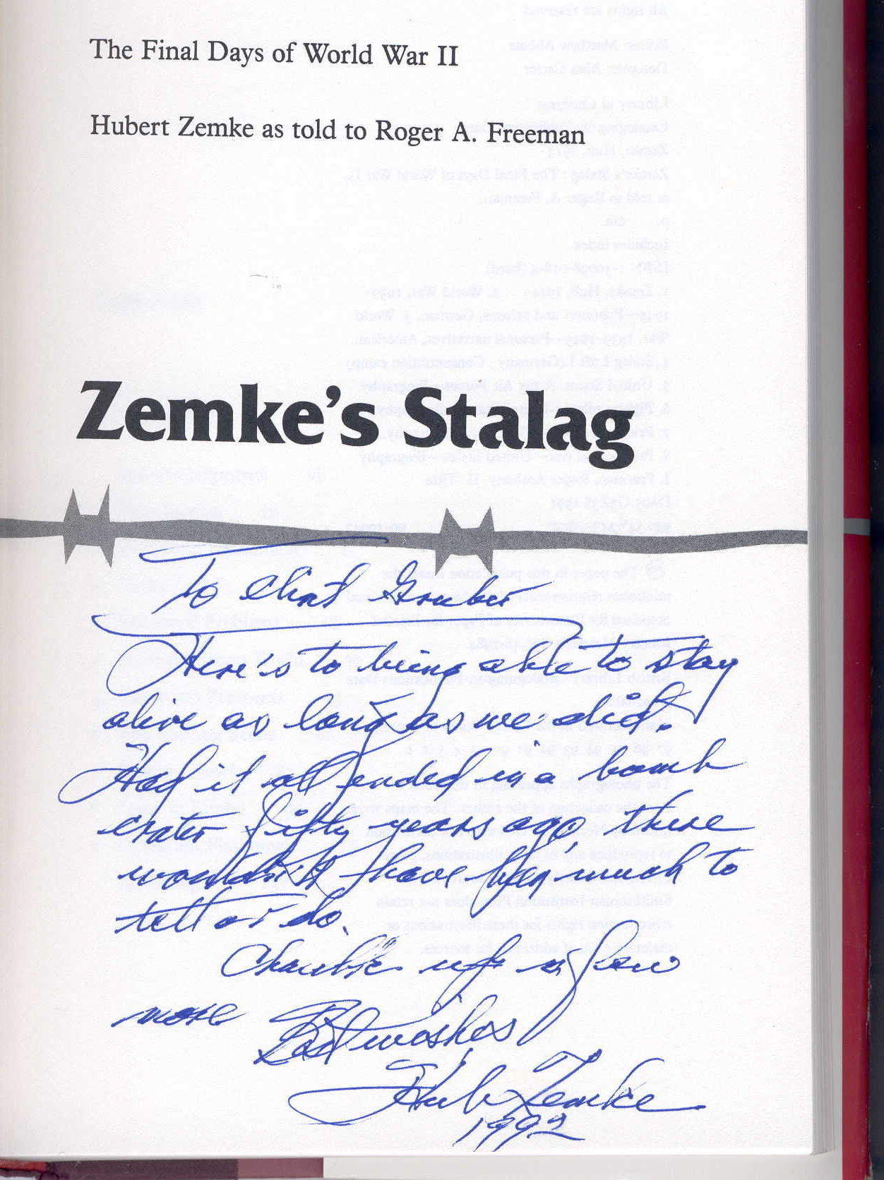 Zemke在戰俘營。他的第56戰鬥機羣在戰時擊落665架敵機,是美國陸軍航空隊最高記錄。他本人也擊落17.5架,是美軍前25名的王牌之一