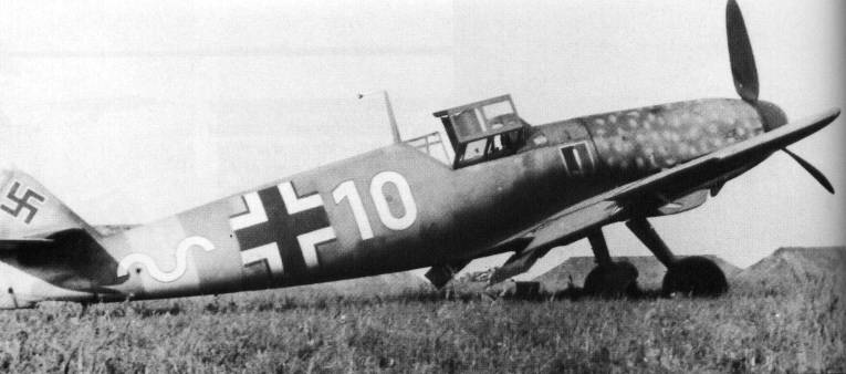 哈特曼的塗有黑色鬱金香標記的Me-109