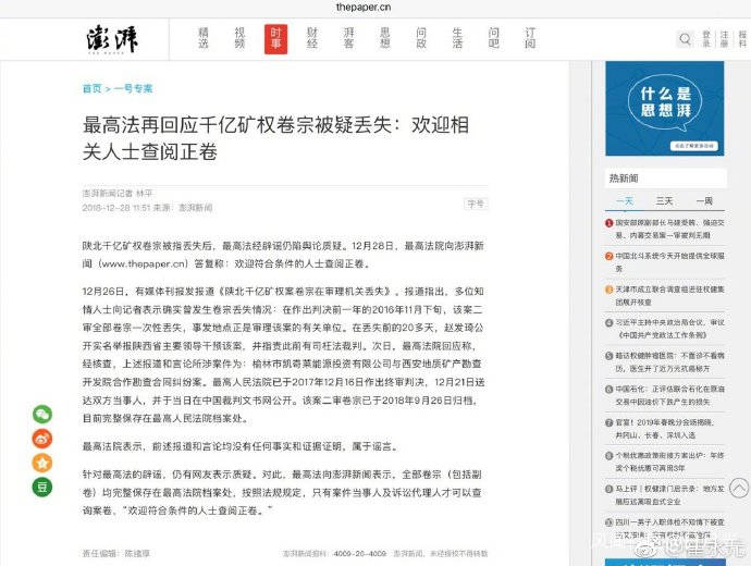 最高法回應崔永元千億礦權案卷丟失質疑:貼圖屬實,歡迎提供情況_風聞