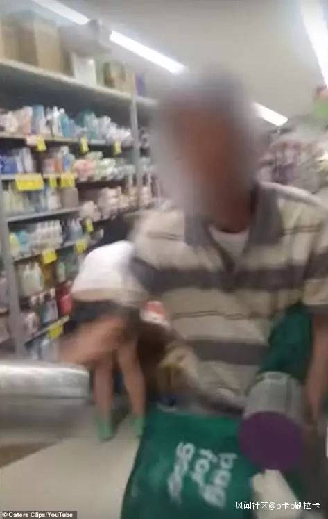旁邊的Woolworths工作人員驚恐萬分,旁觀的老外全程懵圈,閃在一邊用手機拍下了這一個大場面!