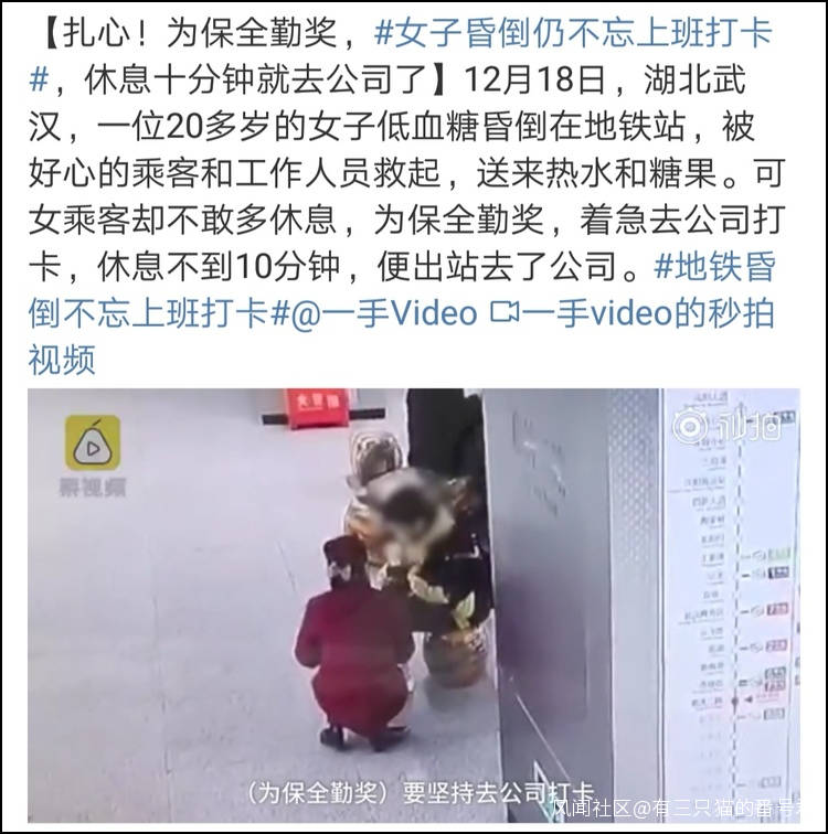 我的同事,哮喘發作緩過來立馬抓着手機發帖;我也曾像這個姑娘一樣,在地鐵上低血糖暈倒後稍作休息馬上趕去上班。