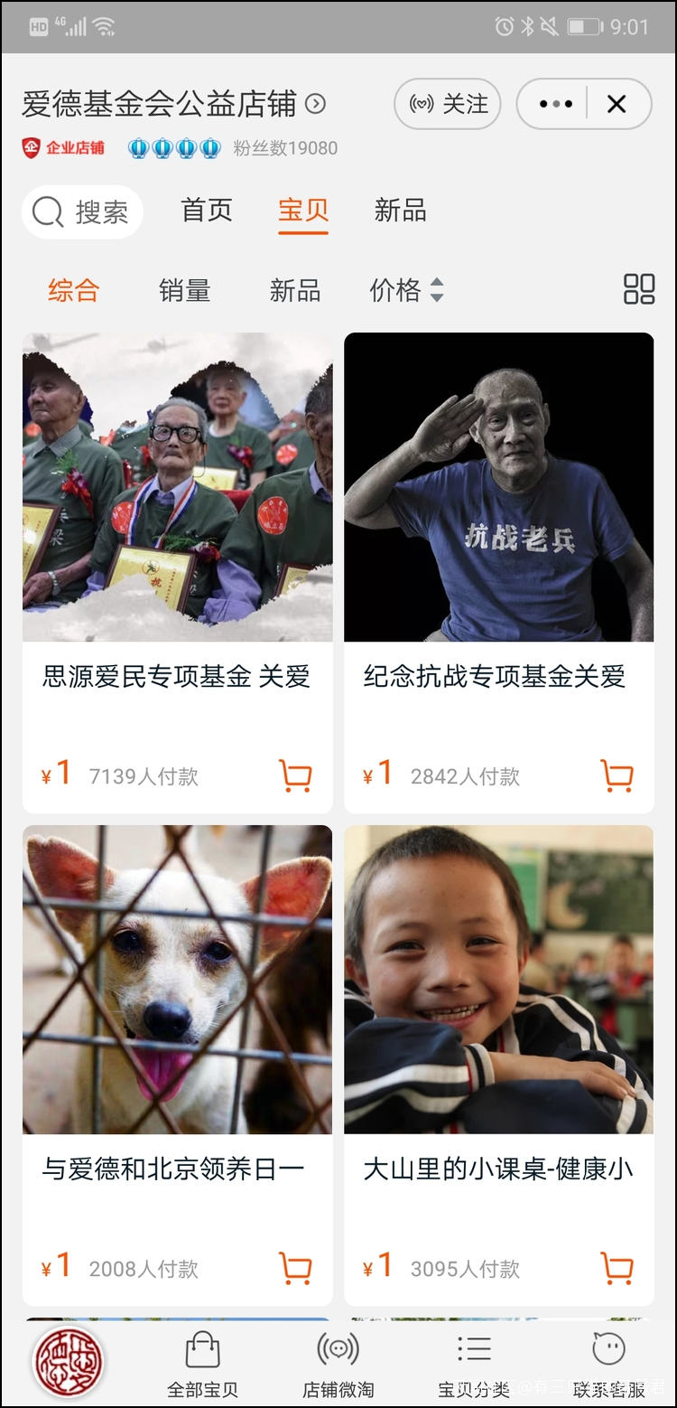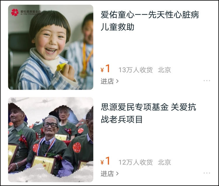 淘寶頁面可以看到,這些公益基金都是企業店鋪。