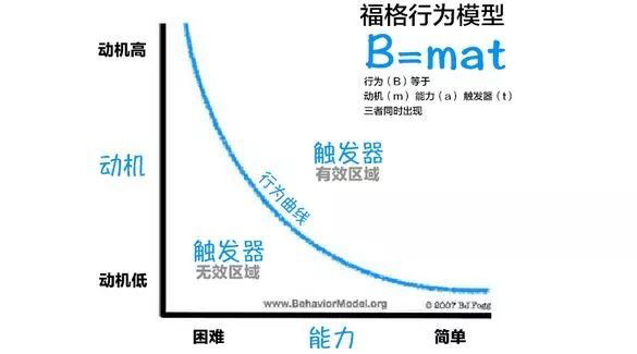 而要佔領用户心智的第一步,就要先讓用户發生行為改變。以FBM模型來看,人類所有行為的背後都有三種驅動要素,要想驅動用户行為,動機+能力+觸發器三種要素必不可少,也就是要有充分的動機;完成這一行為的能力;促使人們付諸行動的觸發器。