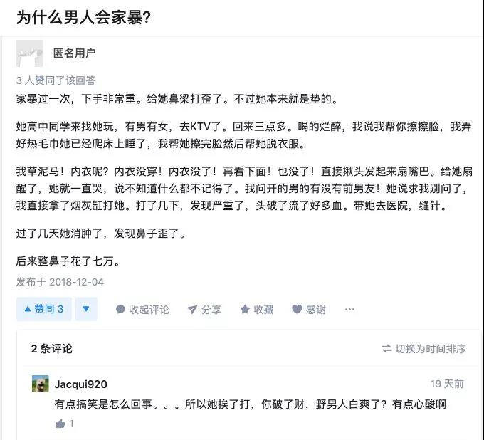 知乎相關話題下驚現家暴分子自述施暴過程,下面除了評論,還有人點贊