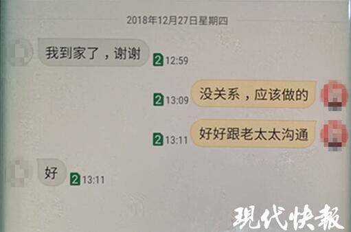 現代快報記者瞭解到,通過耐心勸導,老太太的情緒平穩了,稱自己時一時糊塗,不會再輕生,同時她也對這位老鄉民警十分感謝。老太太的兒子兒媳隨後也回家陪伴老人,並向民警發短信表示感謝。