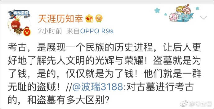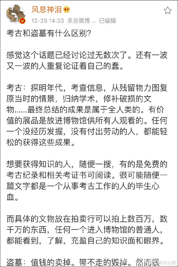 對於考古和盜墓到底有什麼區別,大V@風息神淚 給出了具體的解釋: