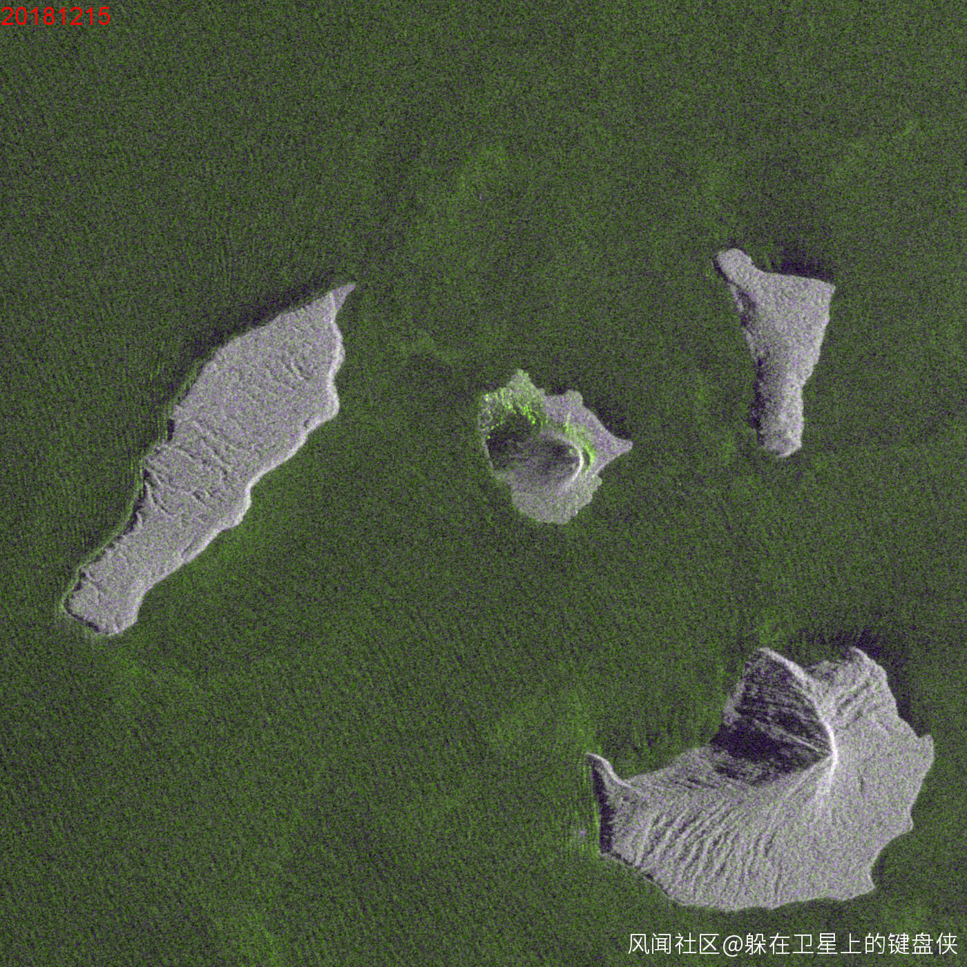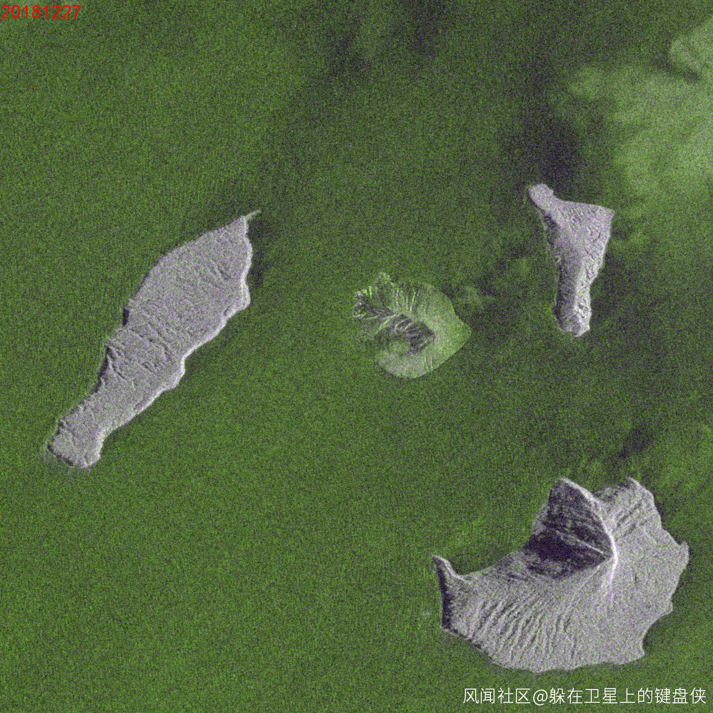 歐空局哨兵一號衞星在22日、25日、27日都拍攝了改區域。前兩次,依然還在噴發的火山灰引入了干擾,成像效果都不太理想。但是27日的圖像上已經沒有火山灰的痕跡,可以對該火山島的情況有更準確的瞭解。